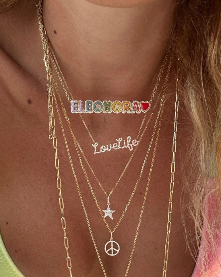Rainbow Pave Outline Enamel Love Necklace Sale price$740.00